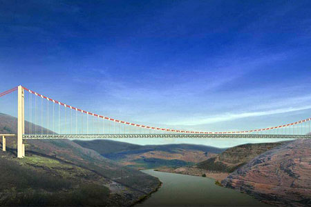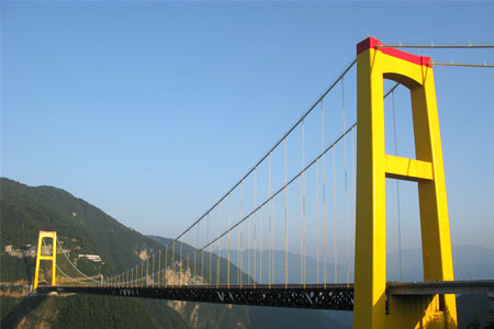 Hubei Sidu River BridgeHubei Sidu River Bridge is called the highest suspension bridge in the world with 1100m long and mai…