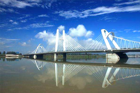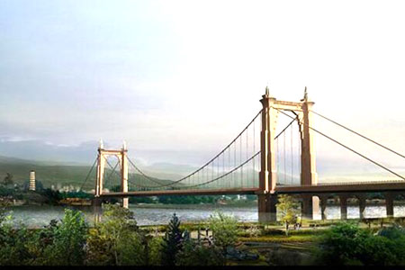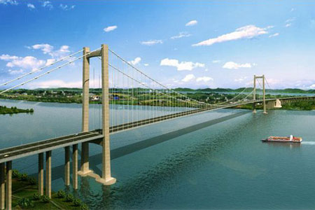 Ganzhou Ganjiang River Road BridgeGanjiang Road Bridge is designed with twin tower, single span self-anchored suspension bridge, main …