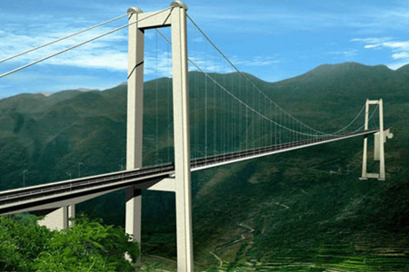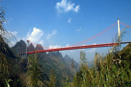 Guizhou Beipan River BridgeGuizhou Beipan River Bridge is a truss girder-reinforced and single-span dual-chain suspension bridg…