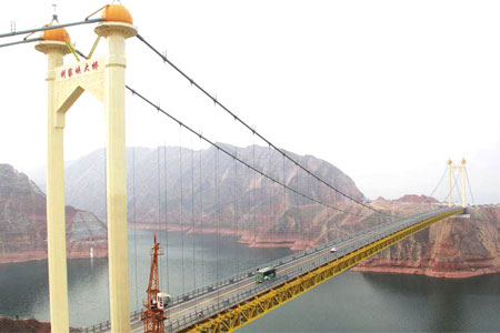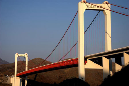 Gansu Zheda Liujia Gorge BridgeLiujia Gorge Bridge is a longest single span bridge in Gansu so far, longest suspension bridge in so…