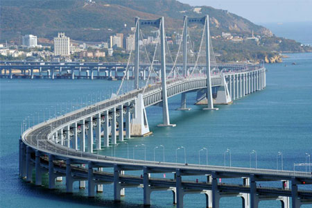 Dalian Xinghai Bay BridgeDalian Xinghai Bay Bridge is a three-span earth anchor suspension bridge, 820m totally long with 460…